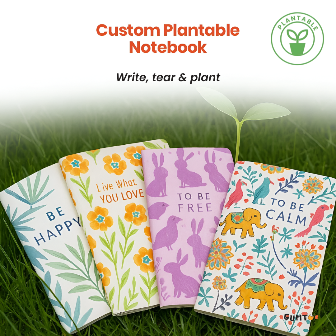 These notebooks are crafted using plantable seed paper, where each page contains embedded seeds that can be planted after use. Instead of discarding old notes, pages can be torn, placed in soil, watered and grown into herbs or flowers — giving a second life to every sheet. Available typically in A5 and pocket sizes, they make for a thoughtful alternative to regular stationery in onboarding hampers, sustainability campaigns, conferences and workshops. You can also custom-brand the cover to align with your eco messaging.