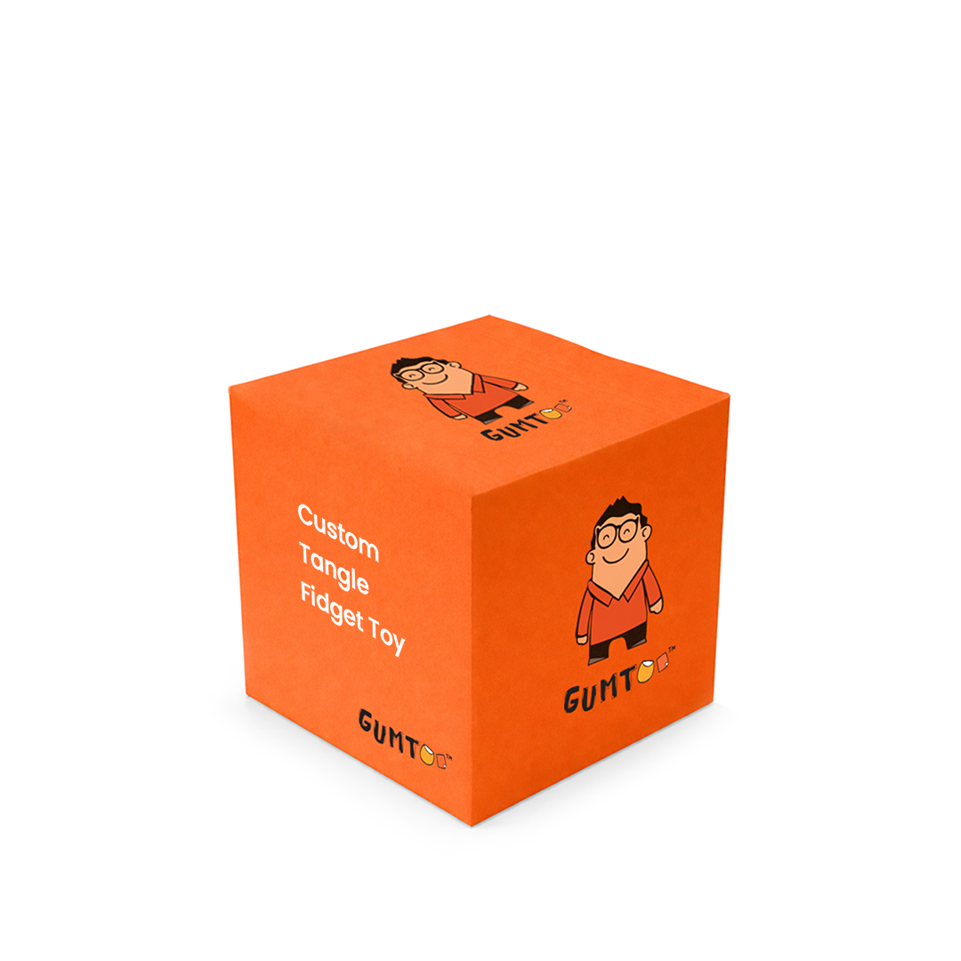 A custom tangle fidget toy is a twistable, connected chain of curved segments designed for stress relief, focus improvement, and sensory play. It can be customised with your logo, colours, or design for branding purposes.